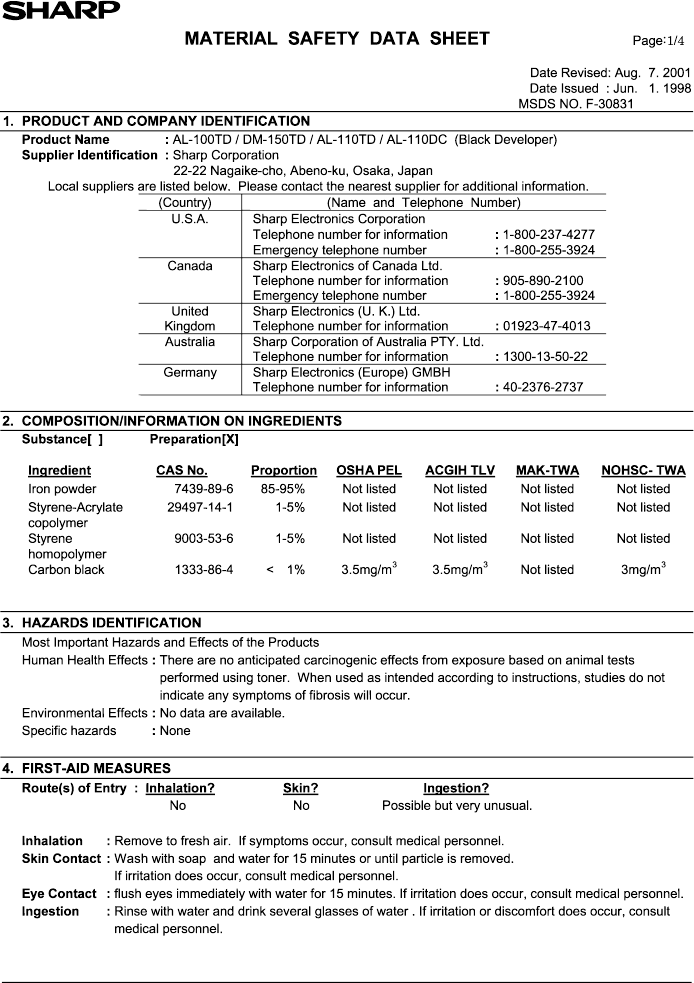 Multifunktionsgeräte Sharp AL-1451 Spezifikationen