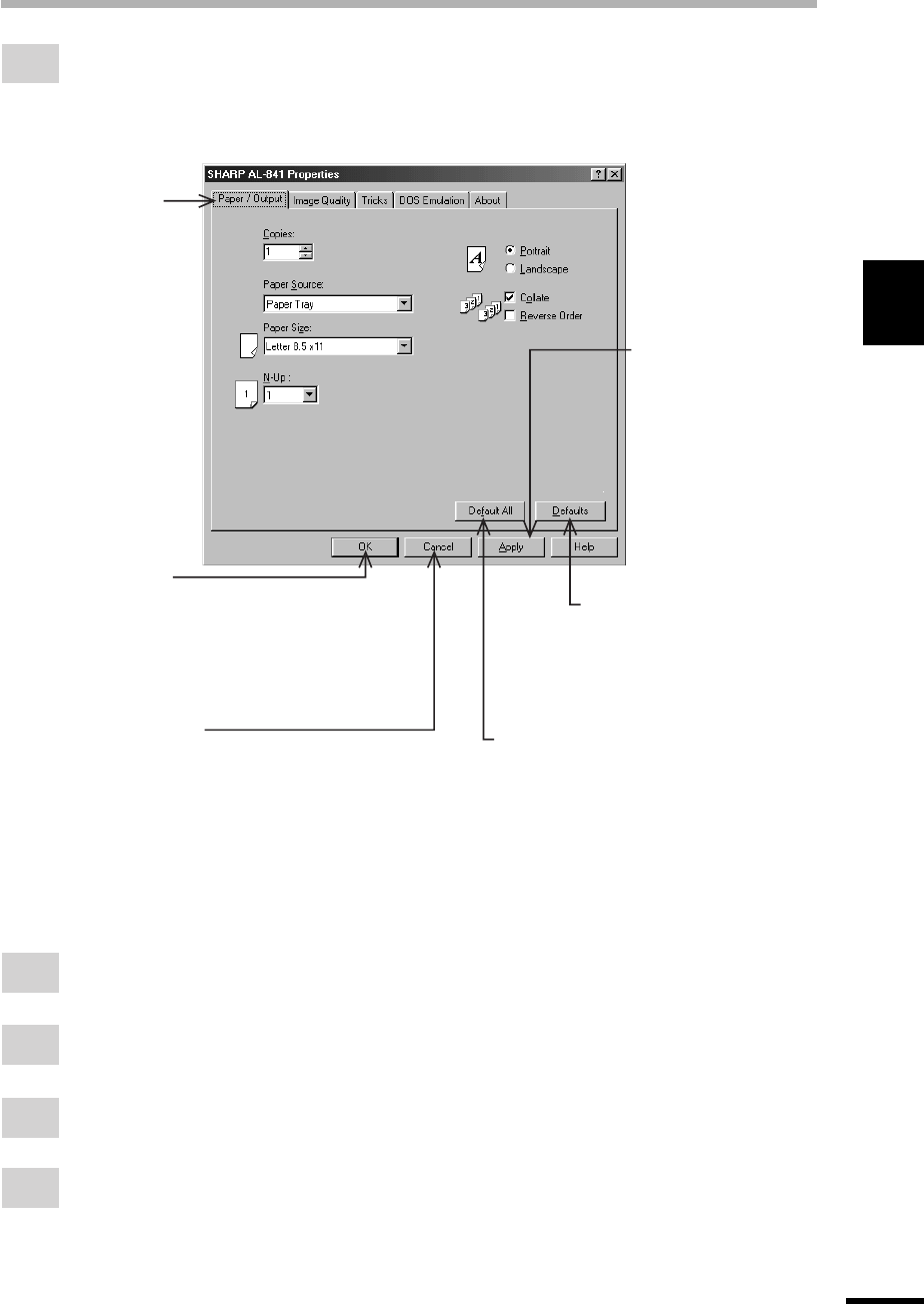 The properties of the SHARP AL-841 printer driver will be displayed. If you use Windows