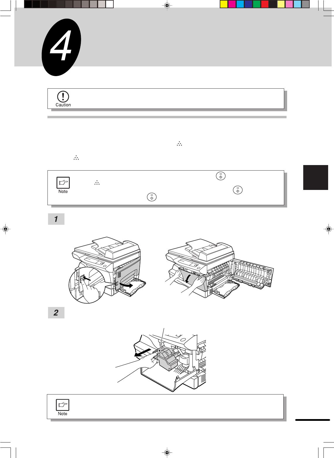 resumed. Replace the toner cartridge by following the procedure below.