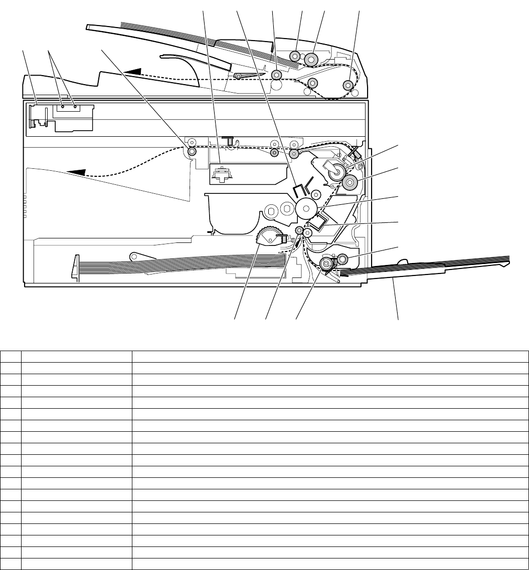 13 PS roller unit Takes synchronization between the lead edge and the rear edge of the paper.