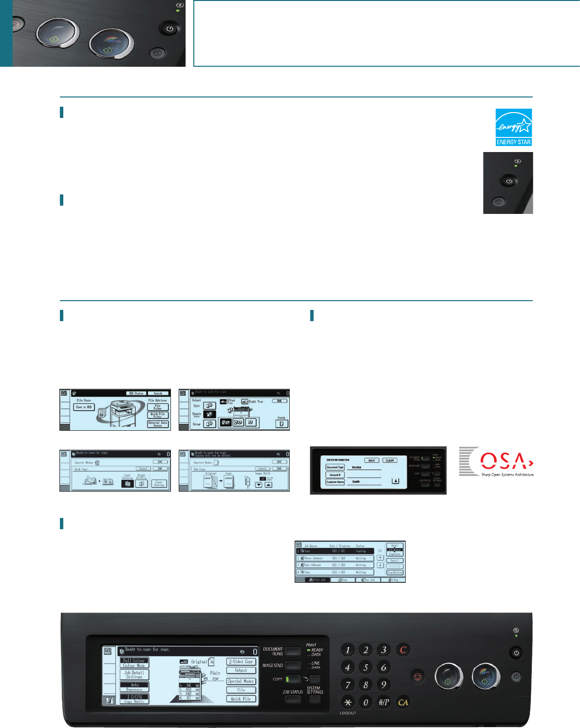 The MX-2301N’s logically designed control panel features a wide,