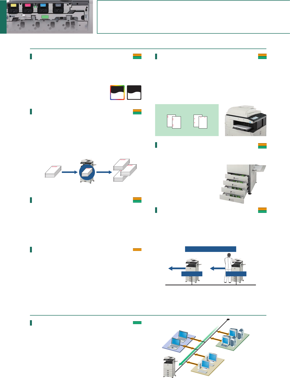 MX-2301N deliver a fast output of 23 cpm/ppm* in full colour