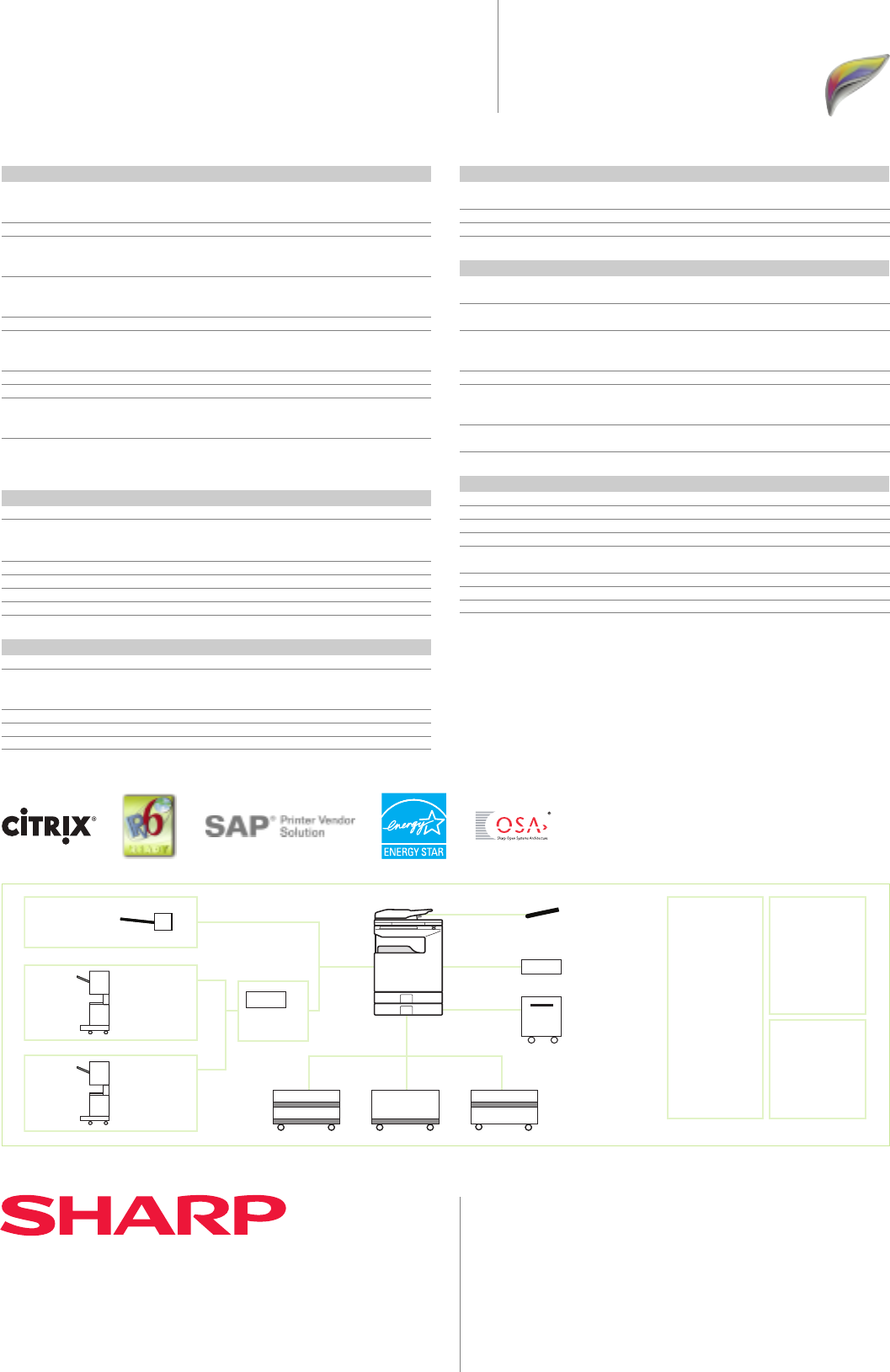 * 9: MX-PKX1 required. *10: Based on Sharp’s standard chart with approx. 700 characters (A4 portrait )