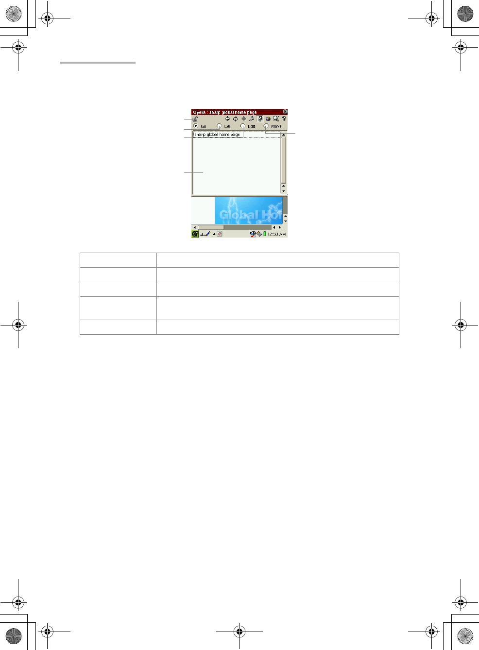 Go radio button Displays the page selected in the bookmark list.