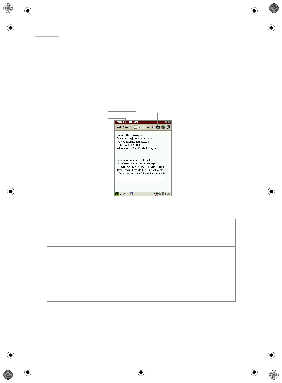 Sends the e-mail message displayed on the Examine