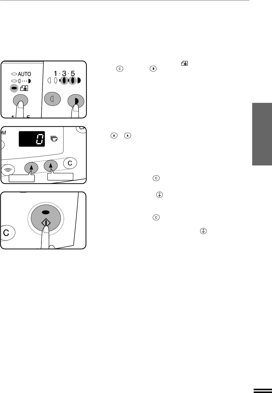 Press the right copy quantity key to set the units digit from 0 to 9. This