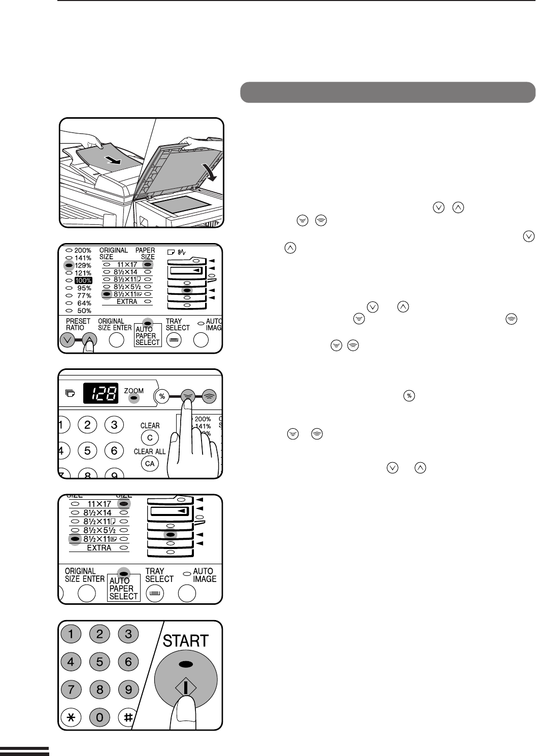 , ) keys to select the desired copy ratio.