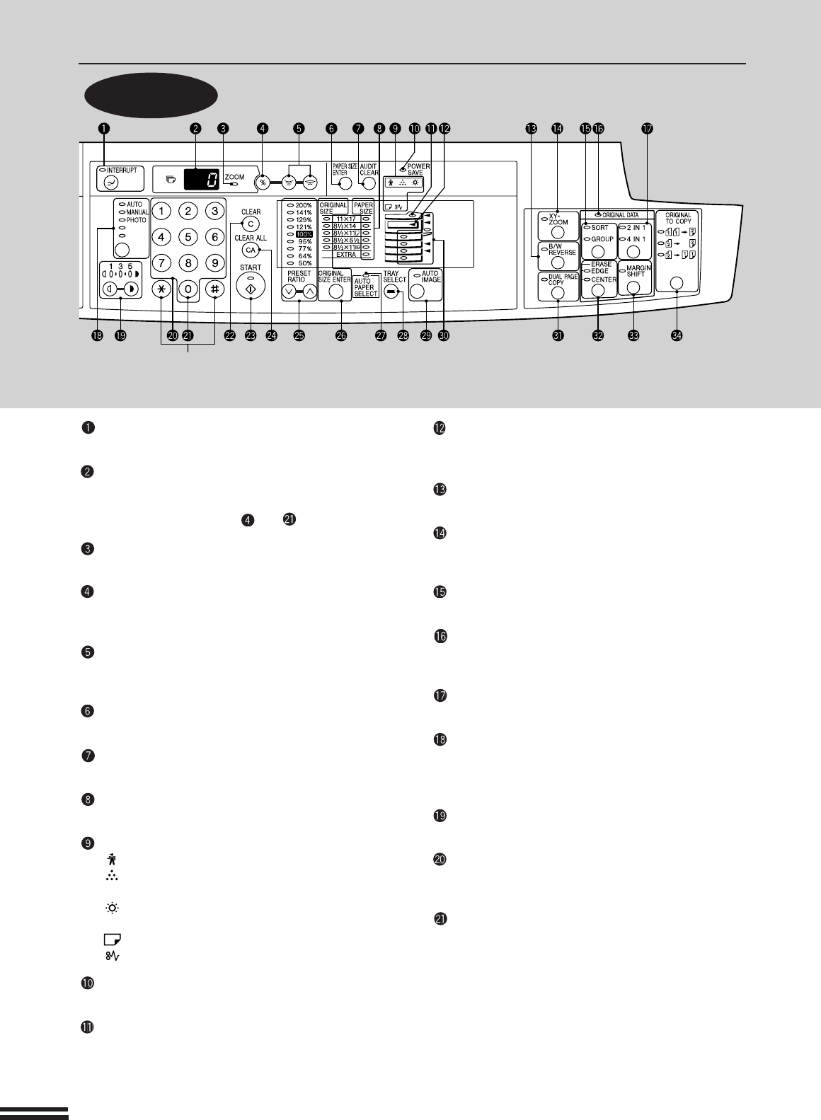 Use to select any reduction or enlargement copy ratio