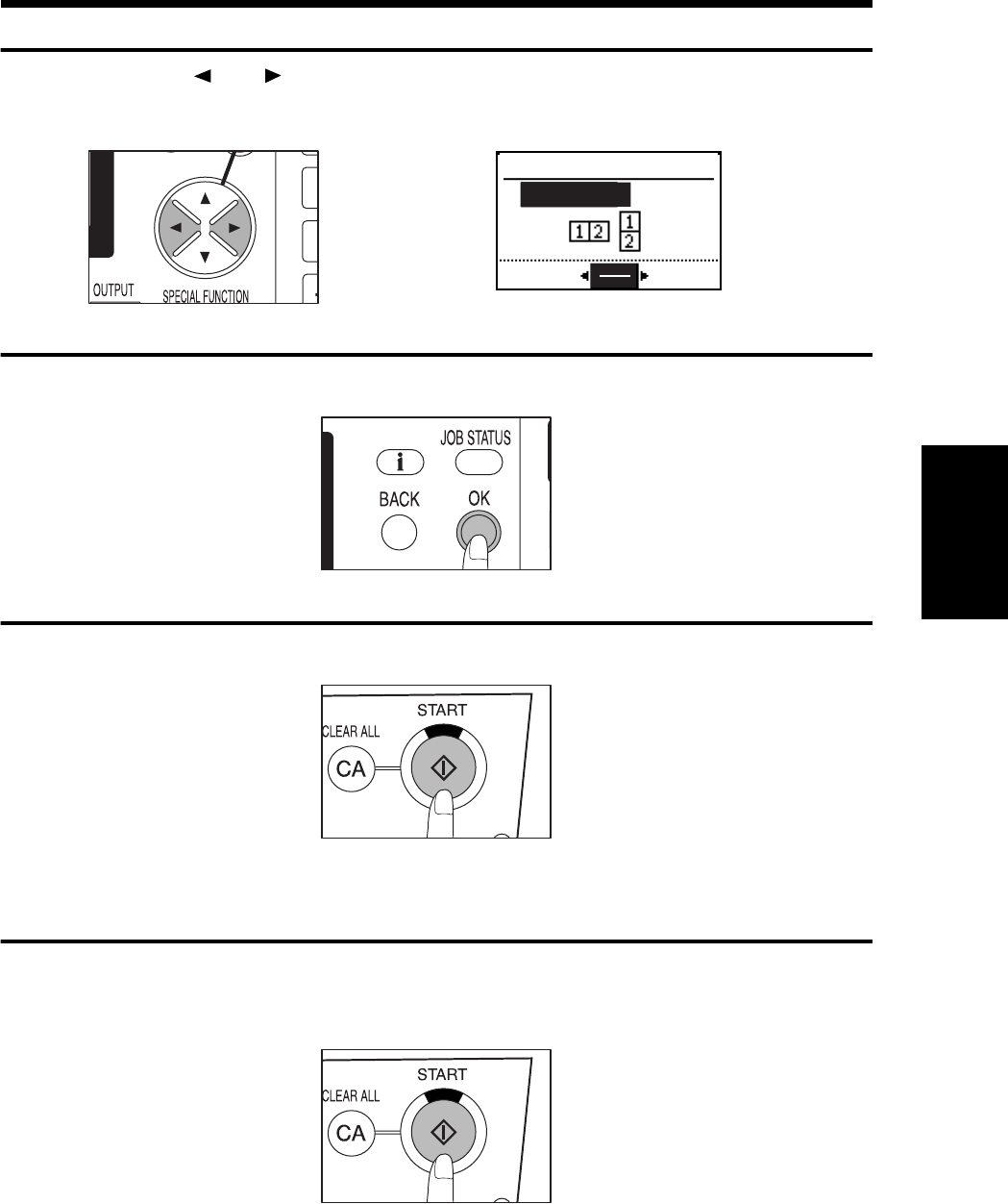 Make all other desired copier selections and press the START key .