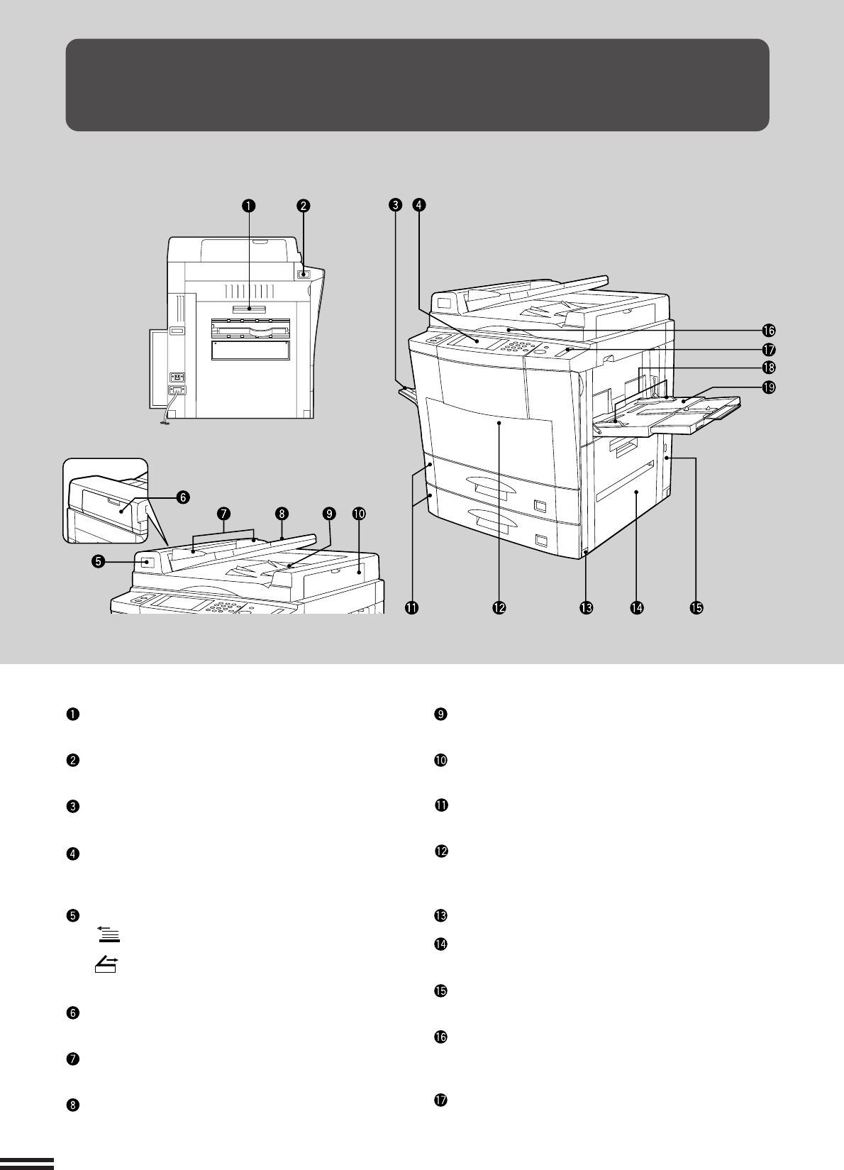Press to turn copier power on and off.