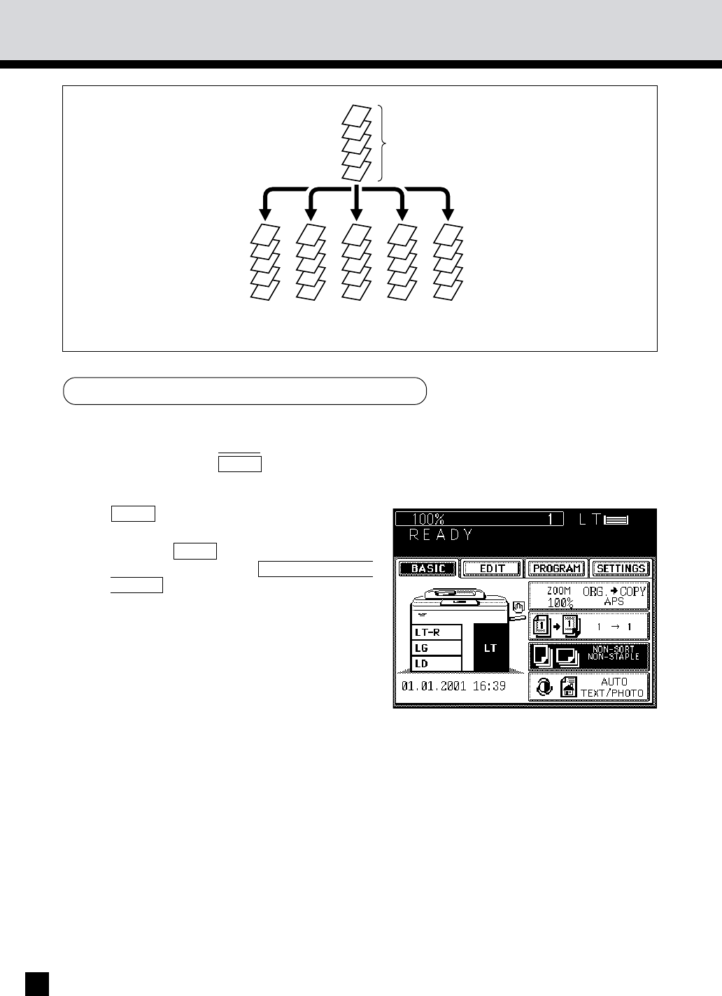 tray. Check that SORT is displayed.
