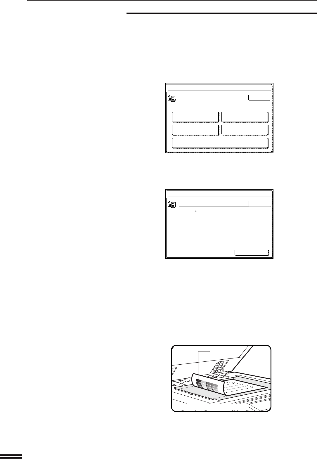 The copier will start scanning the test patch on the document