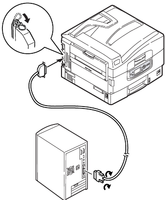 2. Connect a parallel cable between the printer and computer.