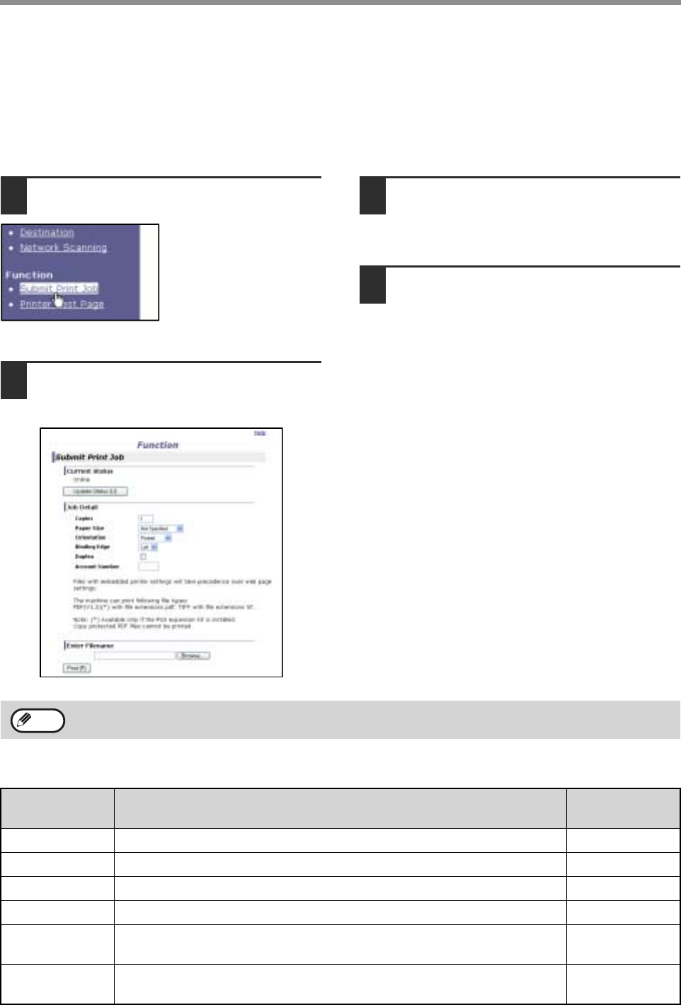 To directly print a file by this method, click [Submit Print Job] in the menu frame of the Web page.