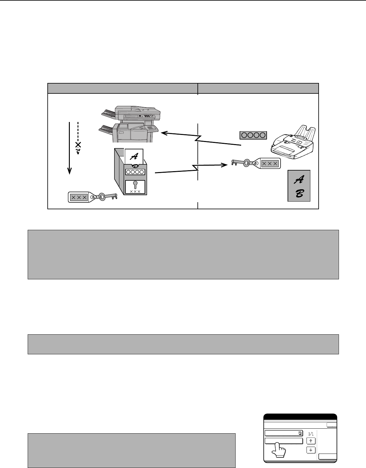 activating reception is called F-code polling, and scanning a document into a memory box for another machine to