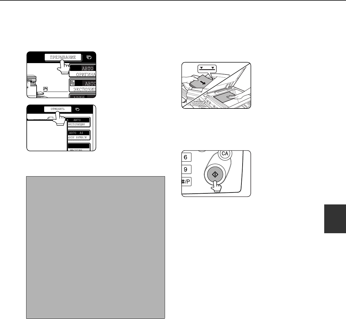 Копия ориãинала, сêанированноãо в режиме прерывания, бóдет ãотова прежде, чем продолжится прерванное êопирование.