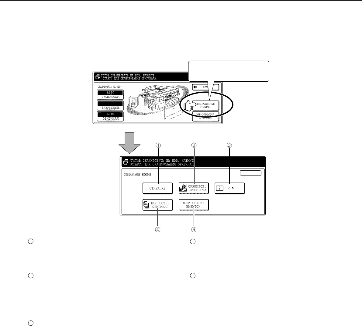 Чтобы отобразить эêран специальных режимов, êоснитесь êнопêи [Специальные режимы] на основном эêране сохранения