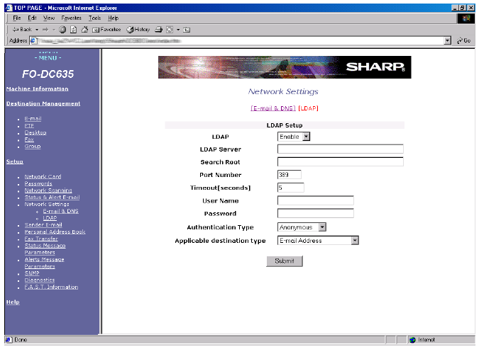 click LDAP under Setup in the menu at the left of the page. The following