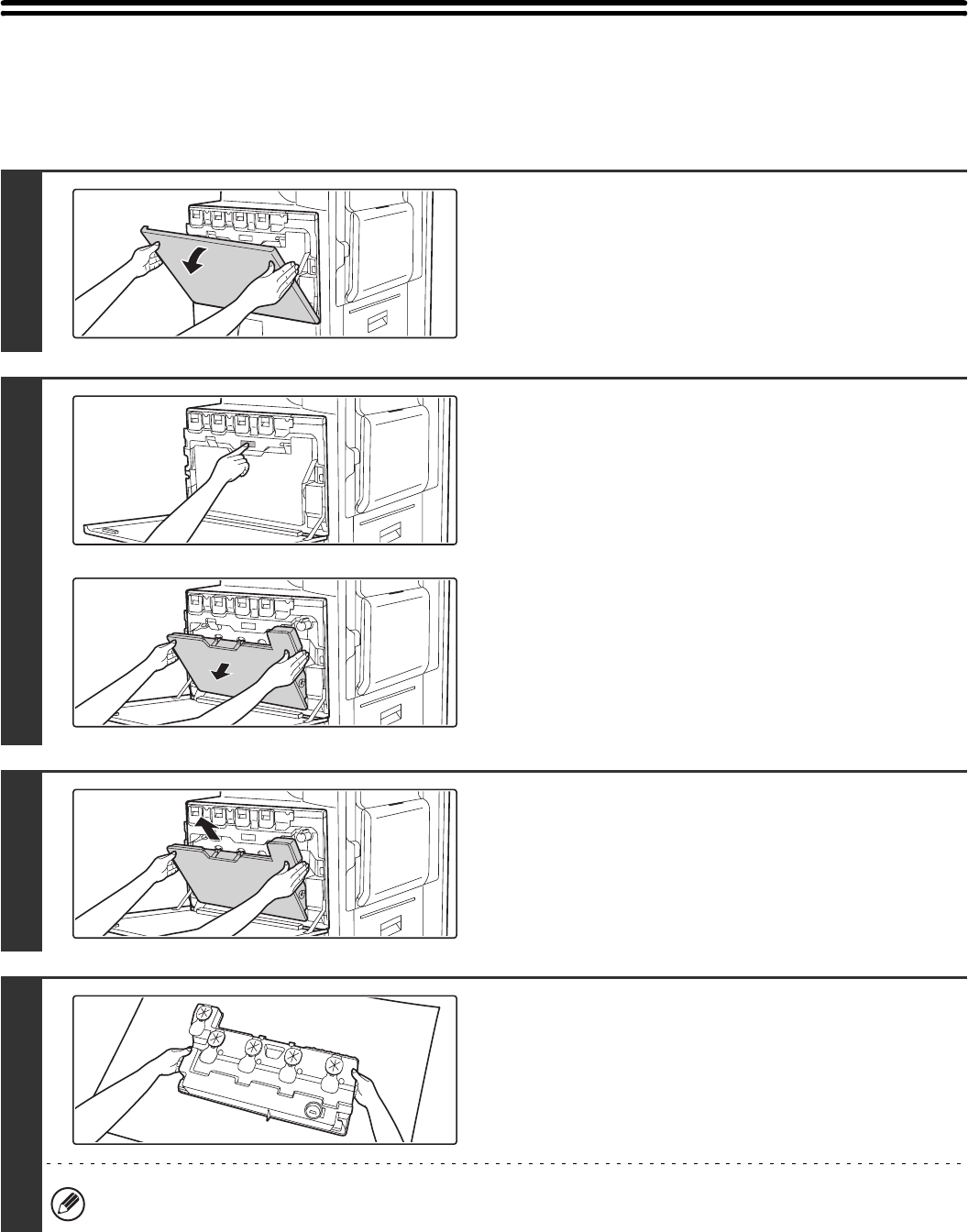 will show "Replace used toner container". Follow the procedure below to replace the used toner box.