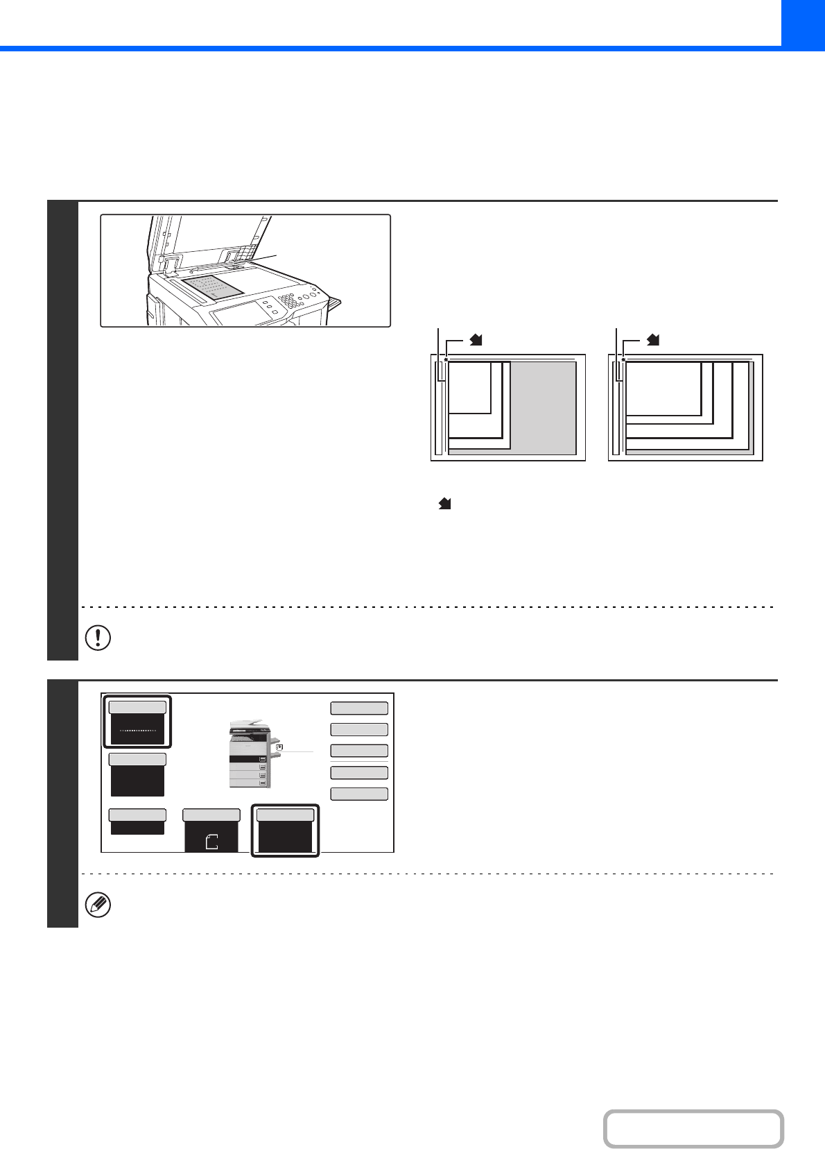 • Place the original in the appropriate position for its size as