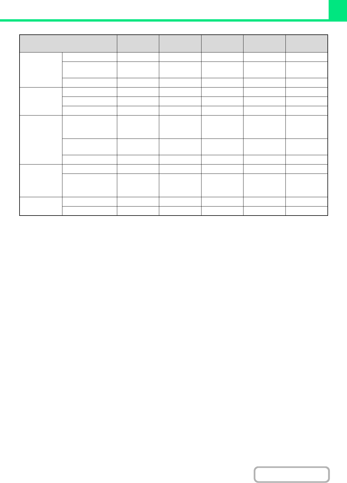 Function PCL6 PCL5c PS