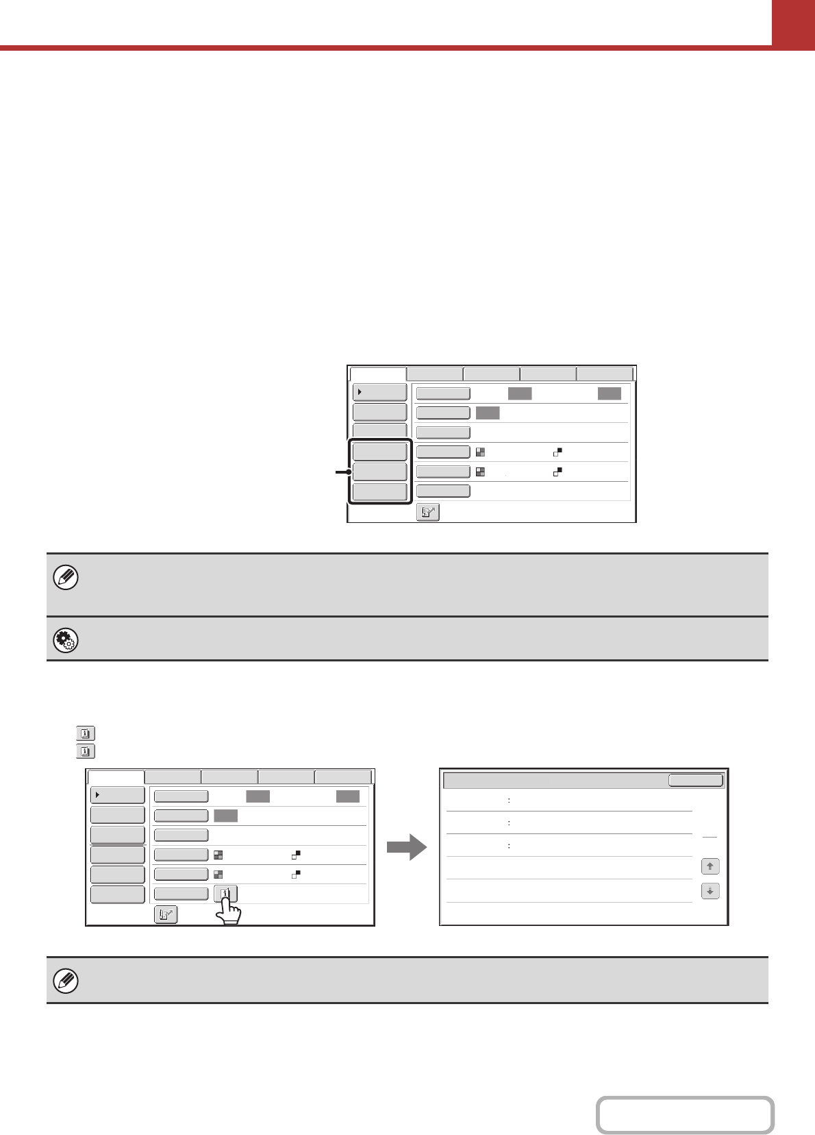 Example: When "Dual Page Scan", "Job Build", and "Mixed Size Original" are assigned to the customized keys