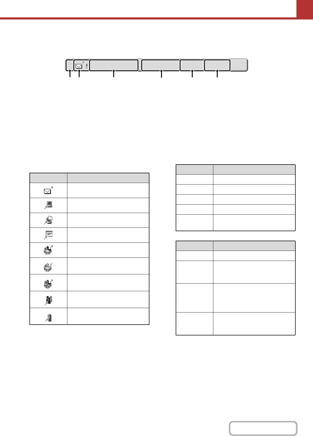 The following information is shown in the job queue keys and completed job keys that appear in the job status screen.