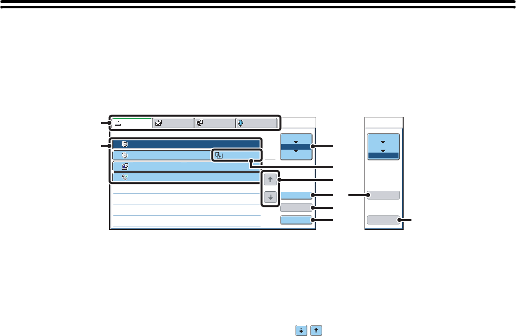 This screen appears when the [JOB STATUS] key on the operation panel is pressed.