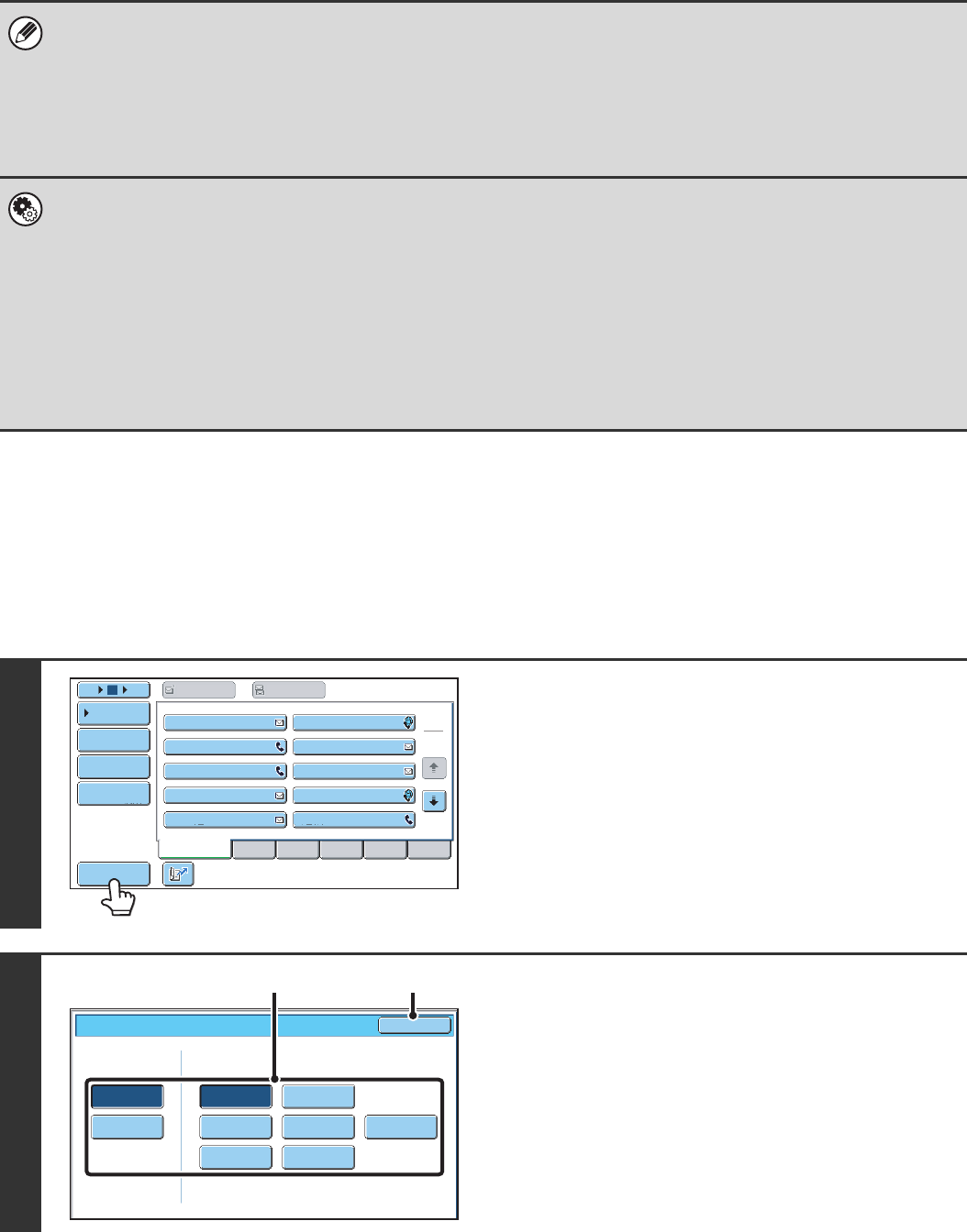 • Icons appear in the one-touch keys in the address book to indicate which mode is used for transmission.