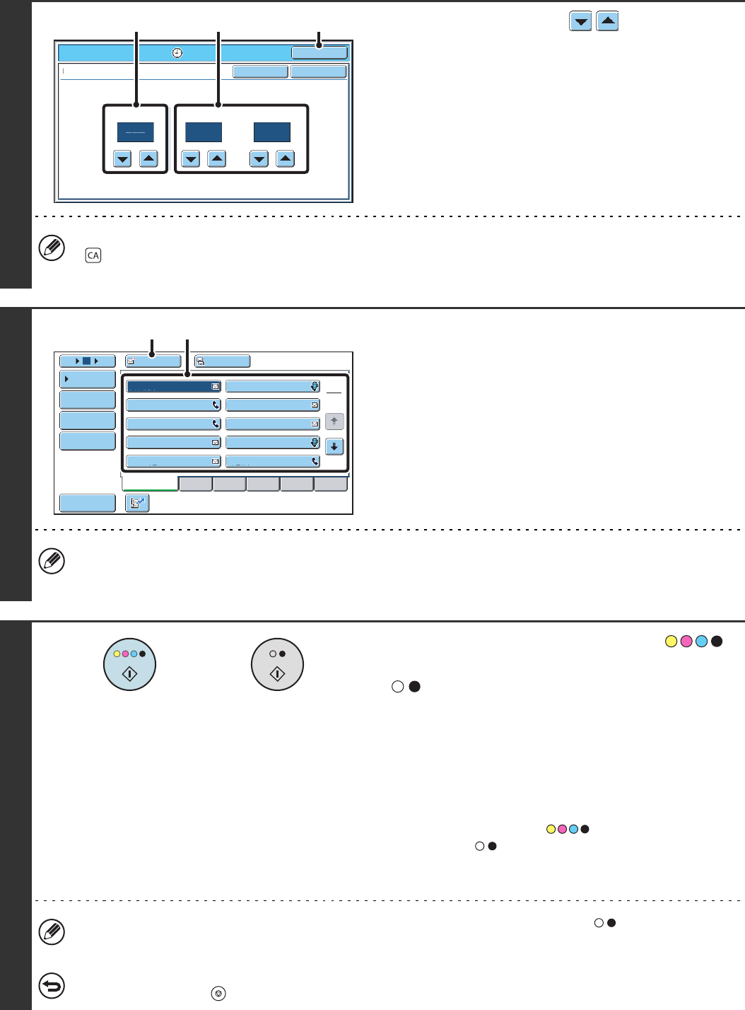 • If the destination is an Internet fax destination, press the [BLACK & WHITE START] key ( ).