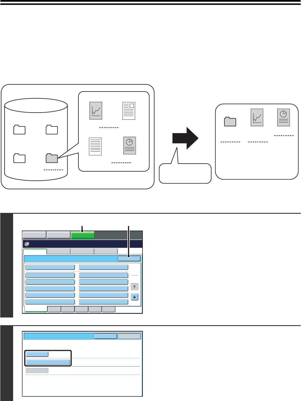 When there are many stored files, it may take time to find a file. The search function of document filing mode can be