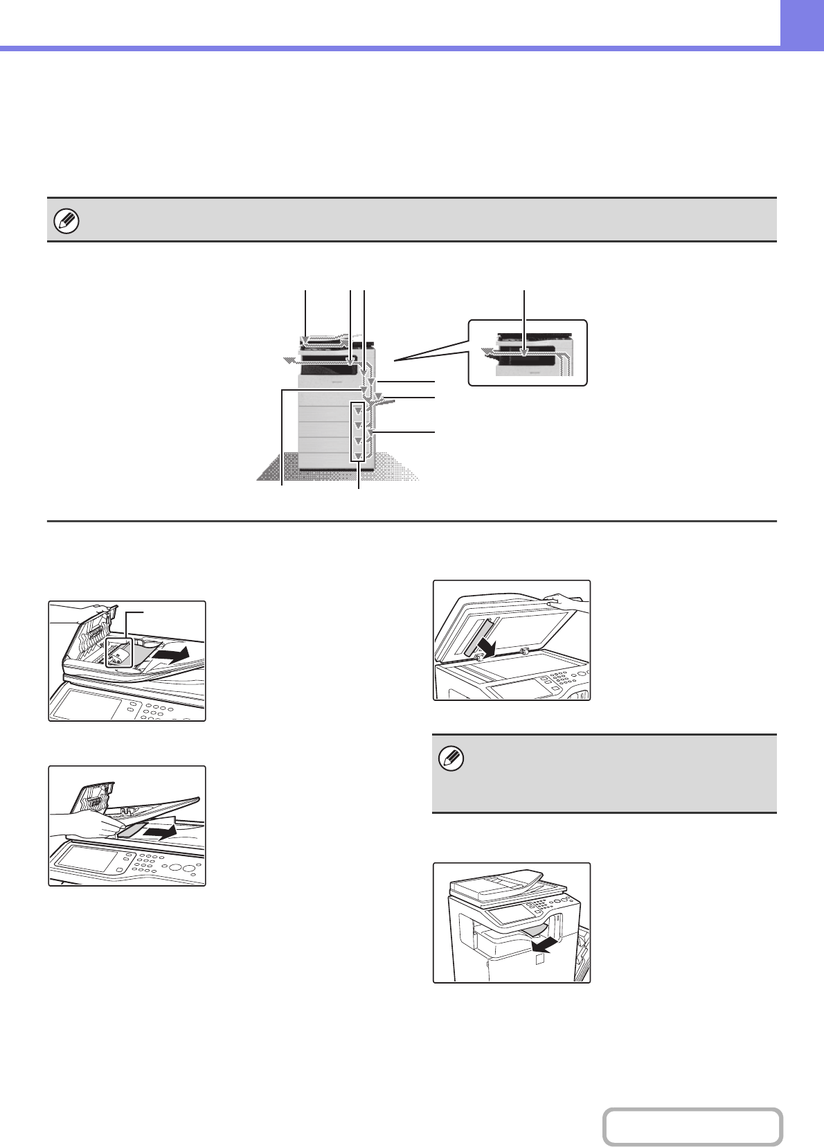 If you require more information when reading the instructions in the touch panel, see the paper misfeed illustrations