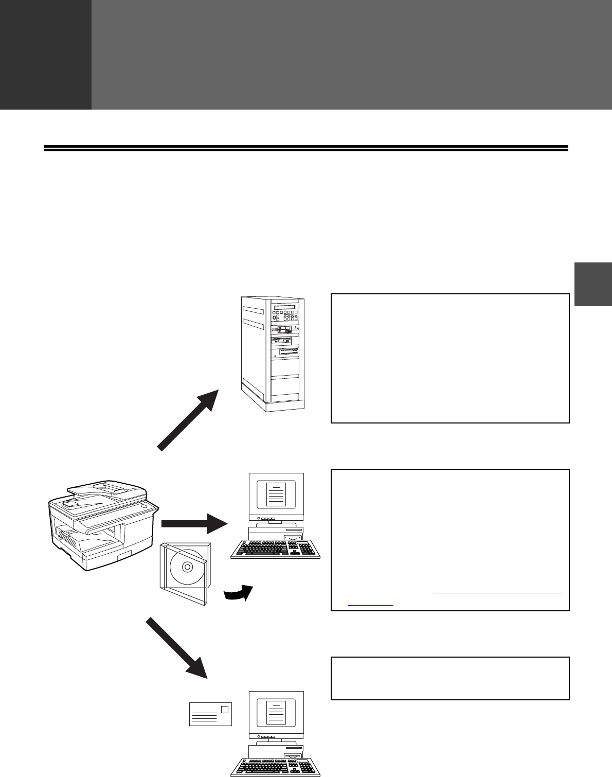When the network expansion kit is installed in the machine, a document or photo can be scanned into an image file