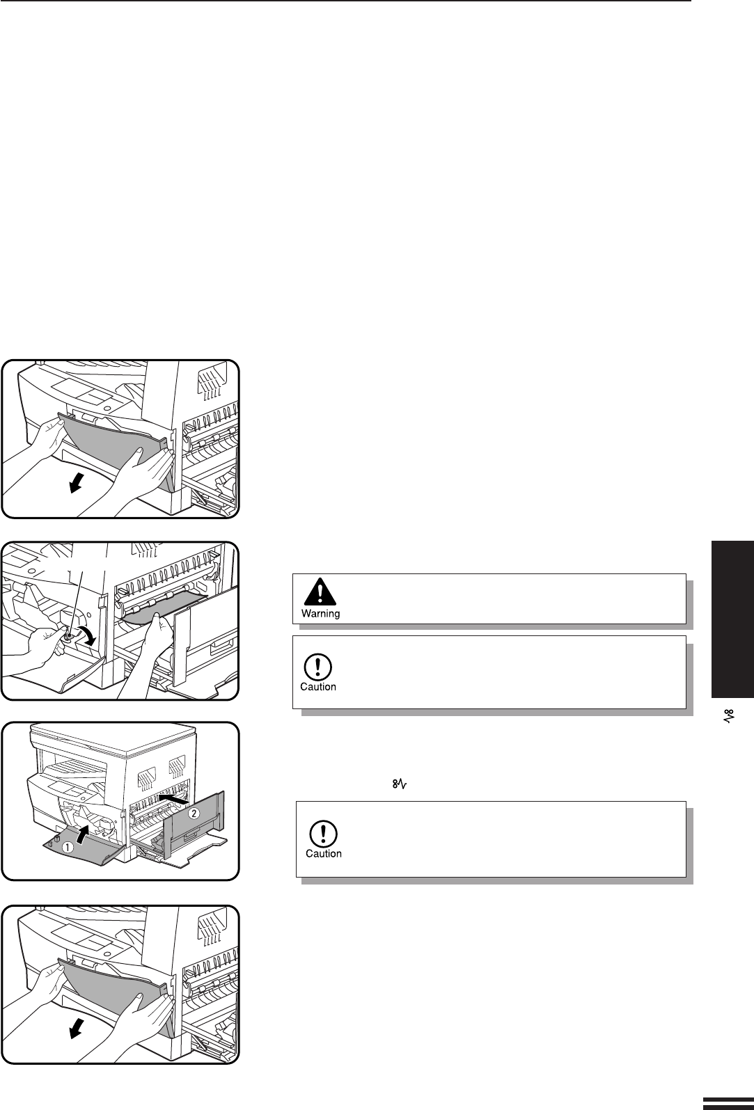 The fusing unit is hot. Take care in removing paper.