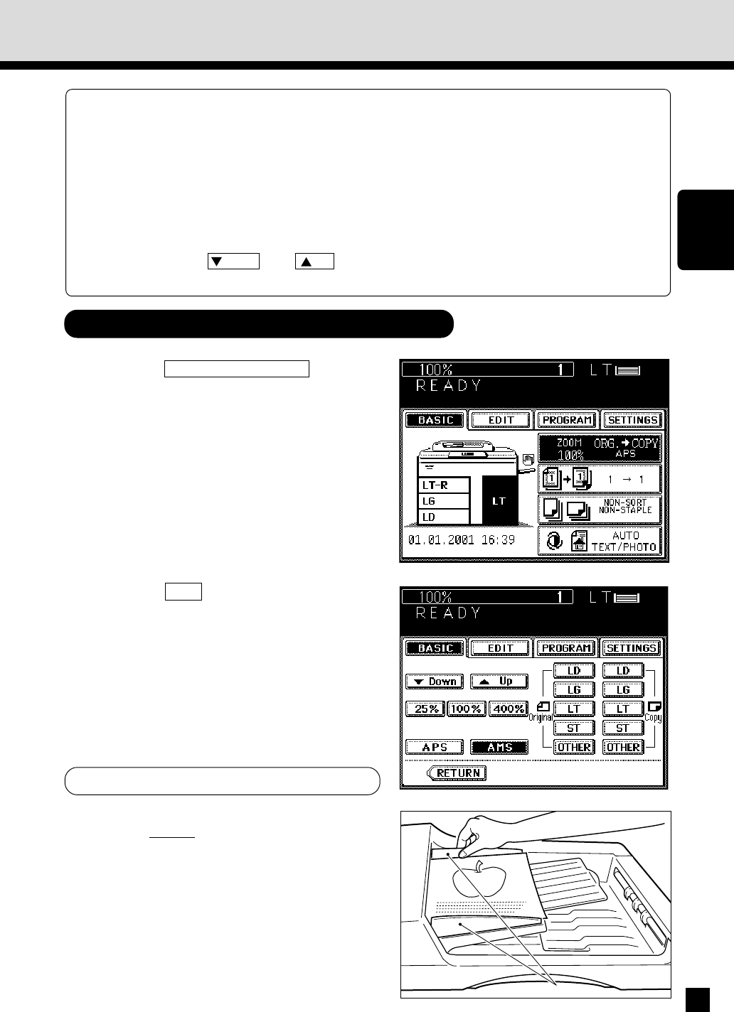 After selecting the AMS mode and the copy size, when you place an original on the glass