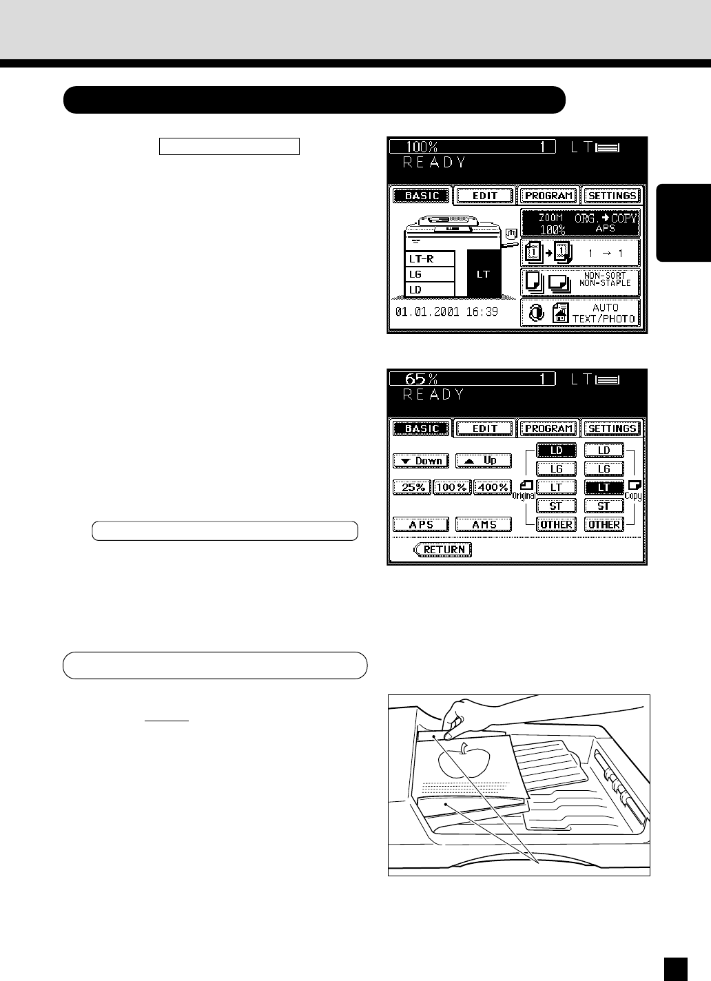 Selecting the Original Size and the Copy Size