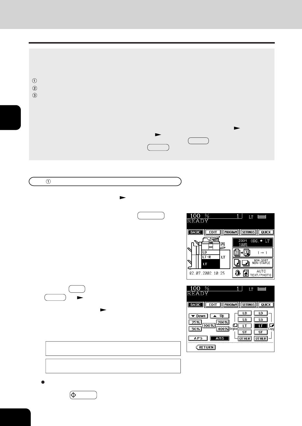 * Set the paper size for “the OTHER” key as required ( Page 5-14). When the set originals or paper are