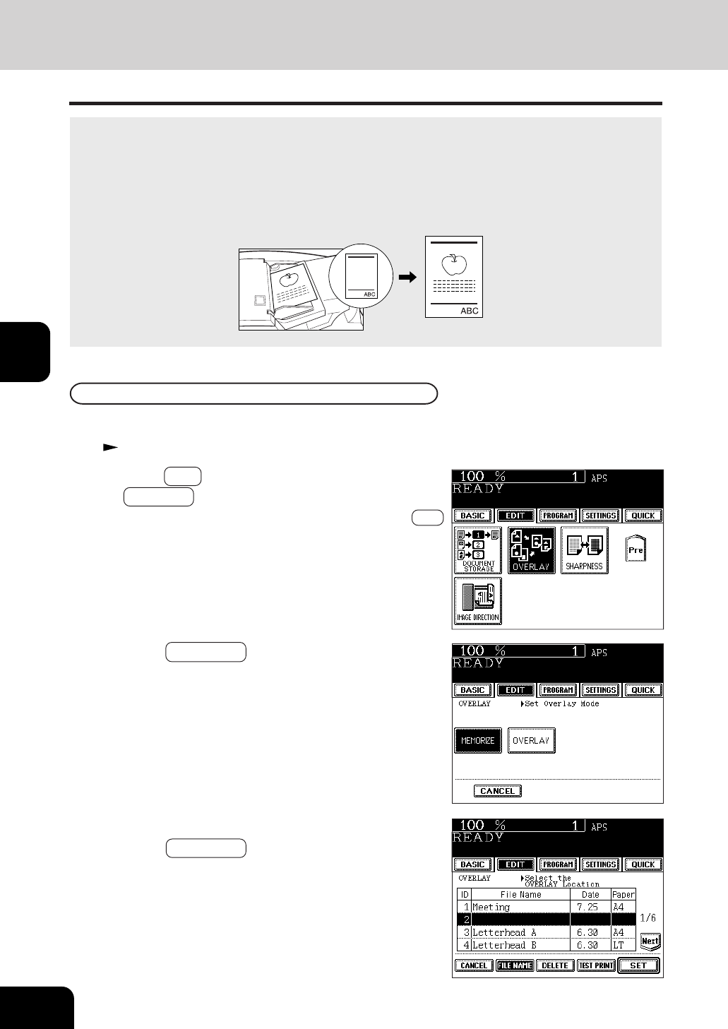 This function stores the images that you frequently use and makes copies by overlaying onto the copied