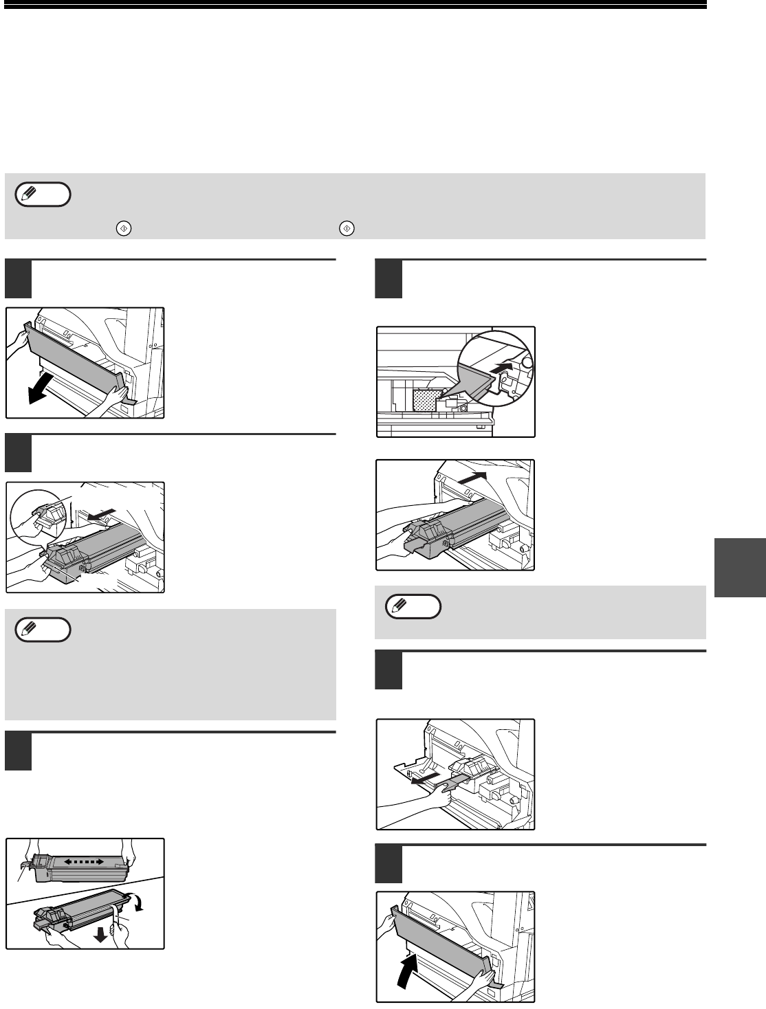 When running long copy jobs or copying originals with many areas of solid black, "TONER REPLENISHMENT IN