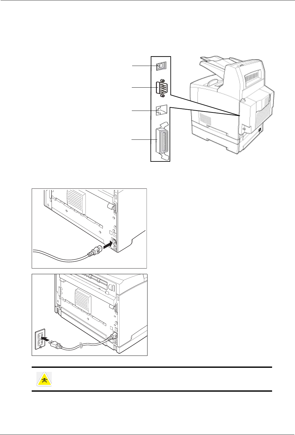 Connect the printer exclusively to an outlet with a suitable voltage rating and current rating