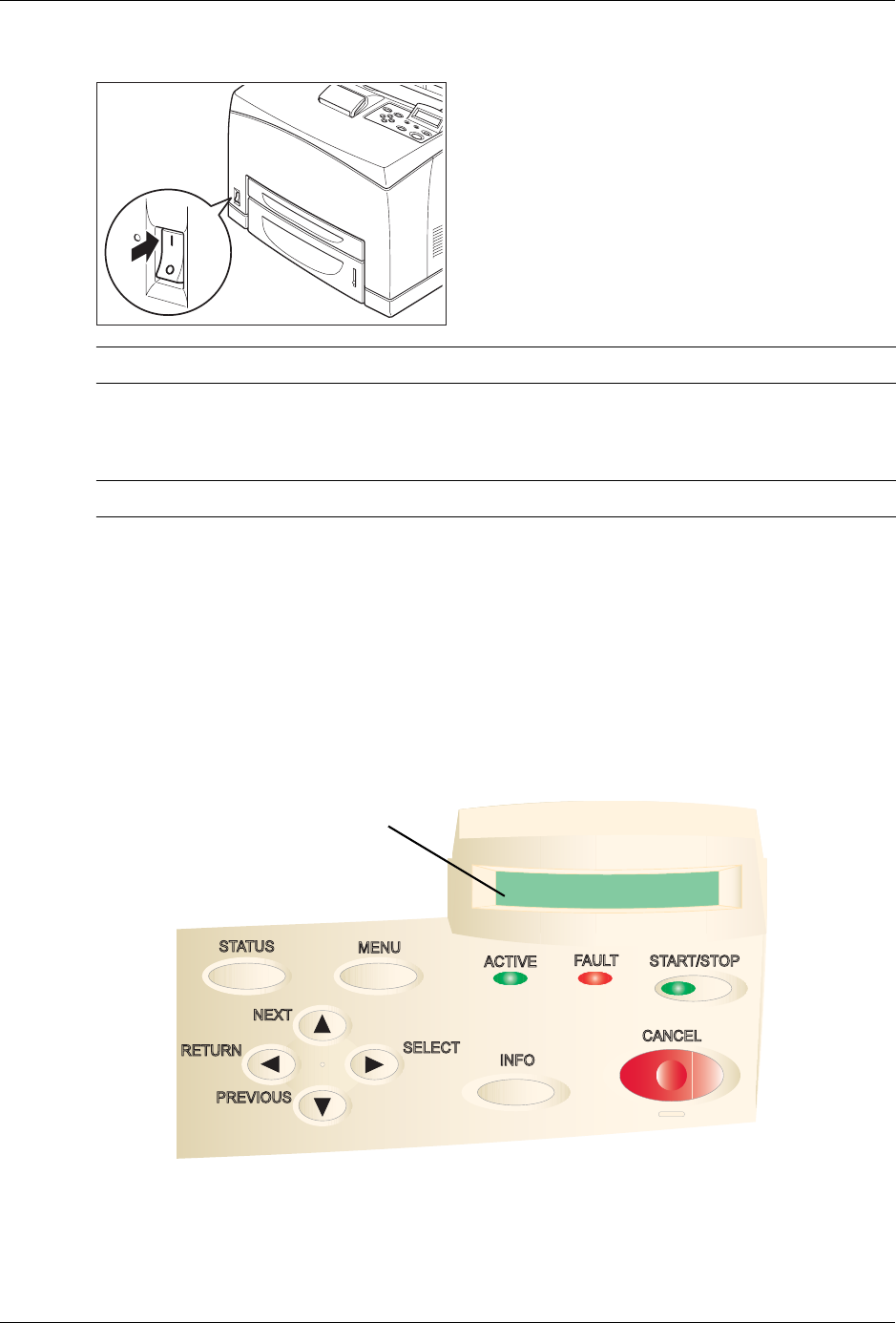 NOTE: The printer motors run for 2 or 3 minutes when you first turn the power on.