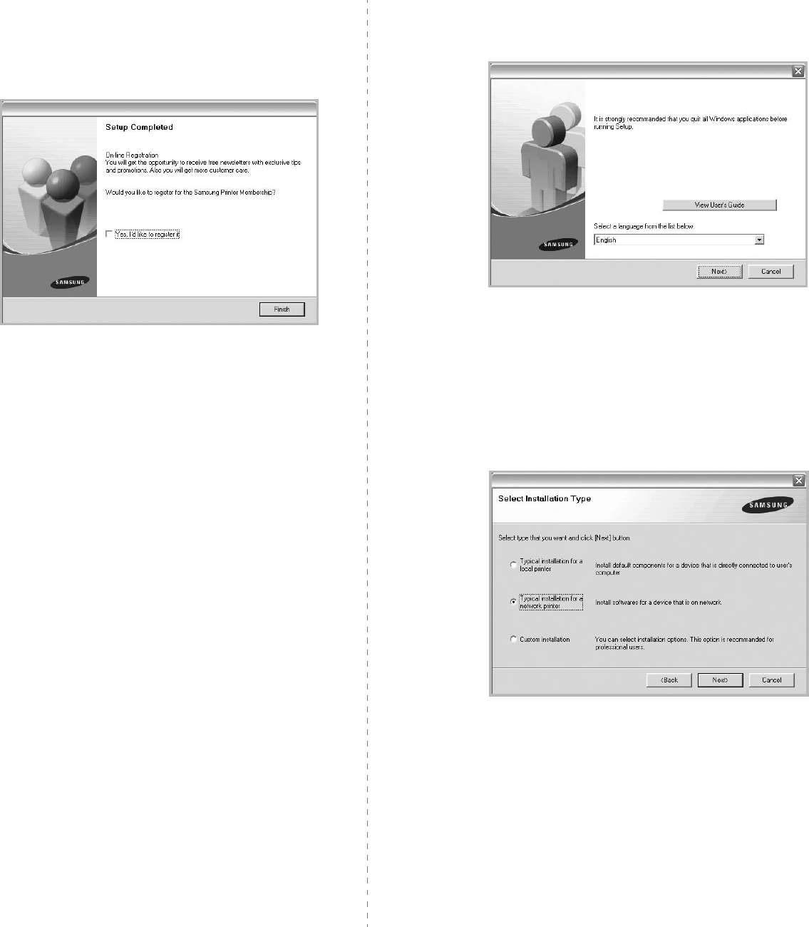 You can install the printer software using the typical or custom