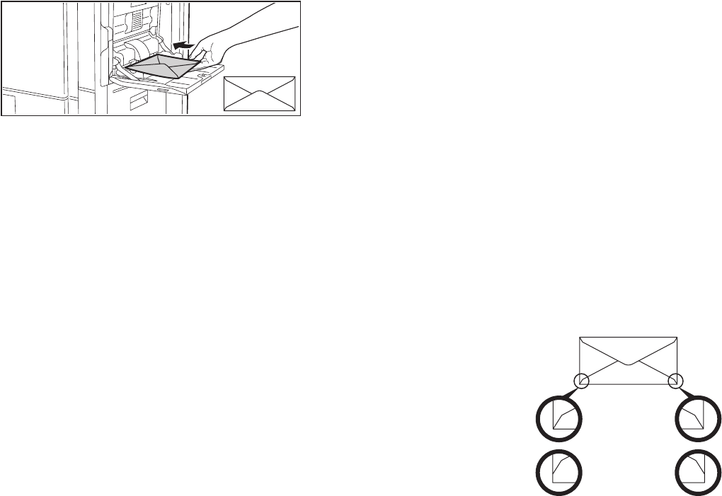 • Do not print on both sides of an envelope. This may result in misfeeds or poor print quality.