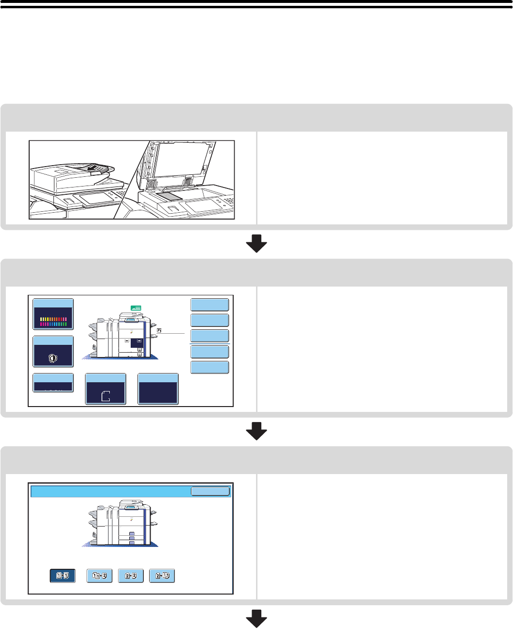 This section explains the basic procedure for copying. Select settings in the order shown below to ensure that the copy