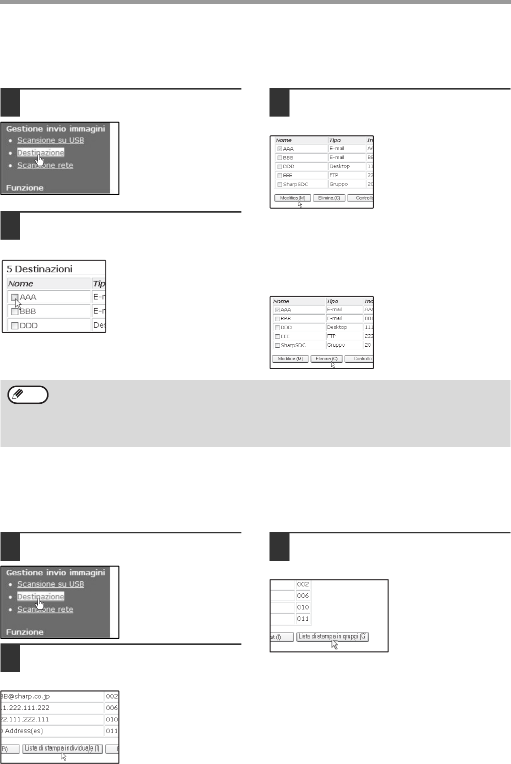 • Stampa elenco gruppo: visualizza solo le informazioni programmate nelle destinazioni di gruppo (e-mail).