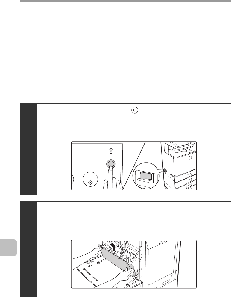 Before replacing the developer cartridge or drum cartridge, turn off the main