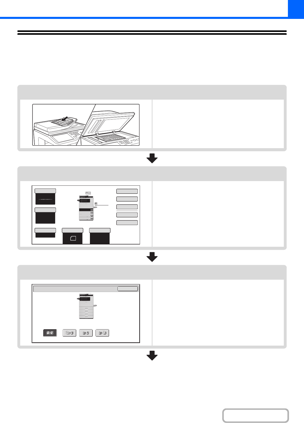 This section explains the basic procedure for copying. Select settings in the order shown below to ensure that the copy