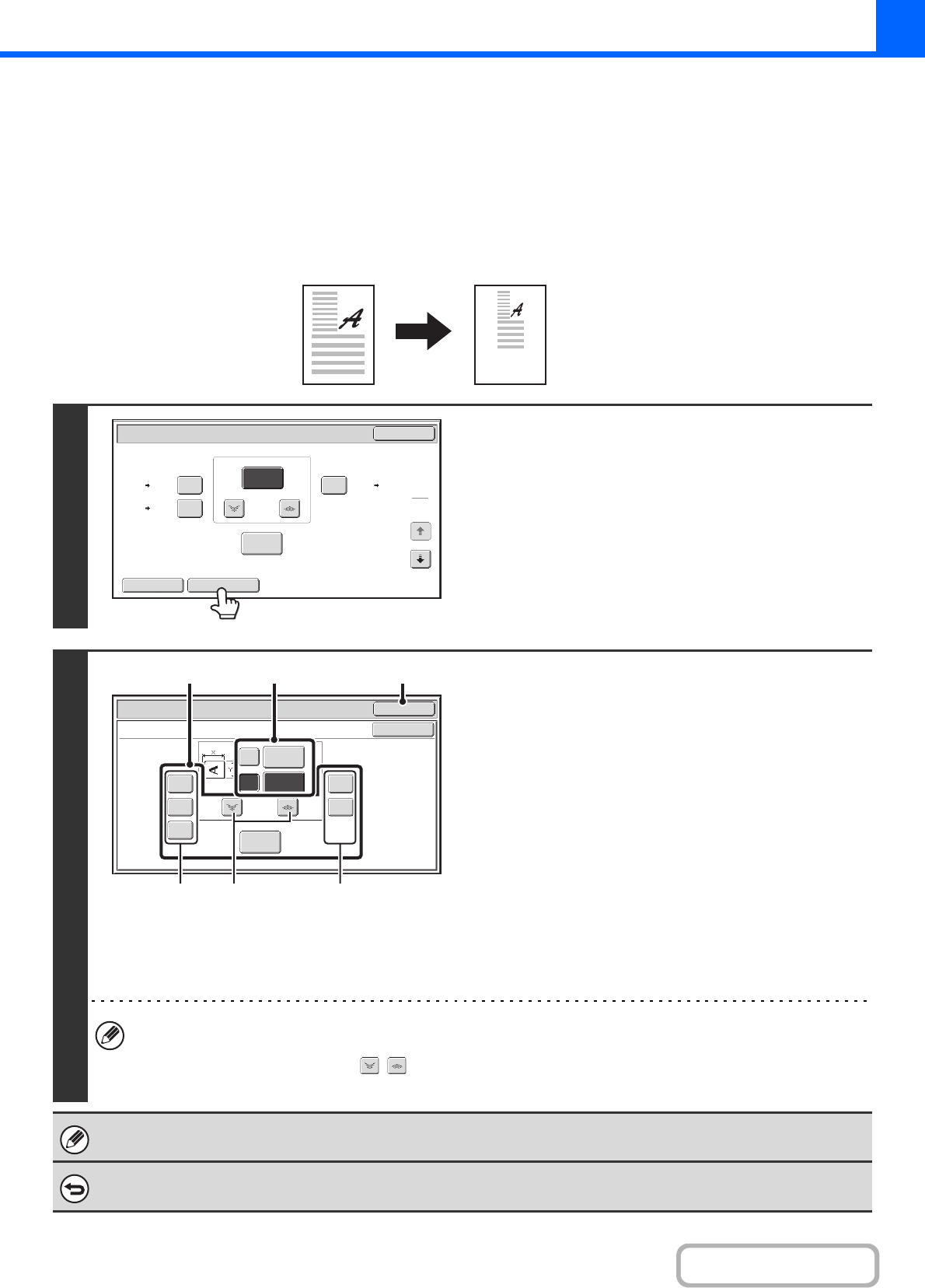 Touch the [Copy Ratio] key in the base screen of copy mode and then follow the steps below.