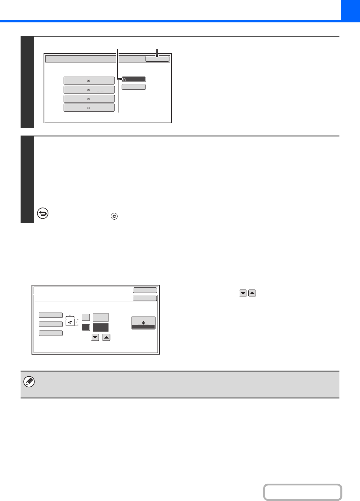 When the [Custom Size] key is touched, the paper size entry screen appears.