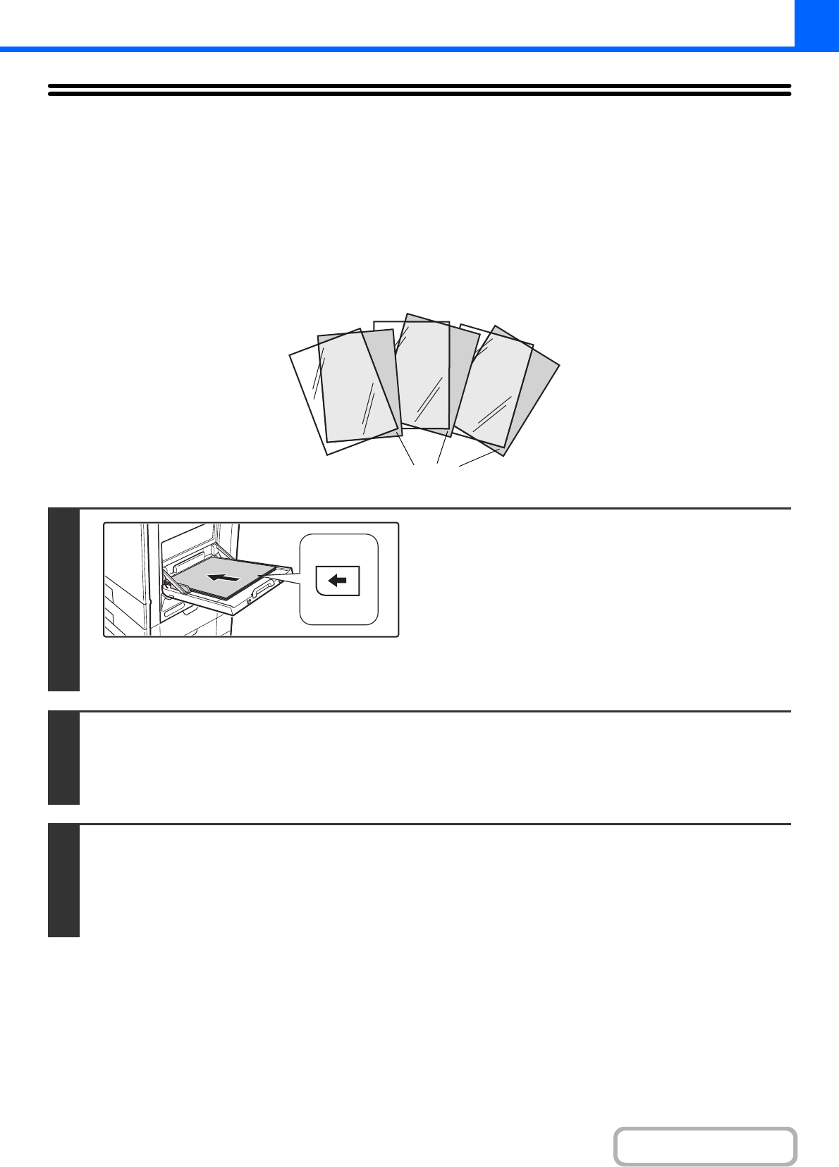 • Transparency film can only be placed in the bypass tray.
